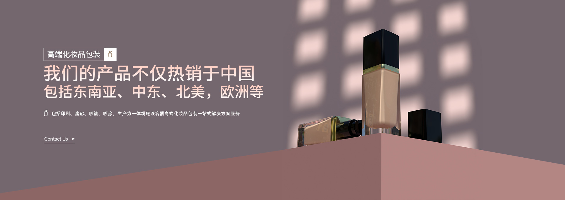 集研發、創新設計、 全套裝潢服務,包括印刷、磨砂、噴鍍、噴涂,生產為一體粉底液容器高端化妝品包裝一站式解決方案服務。